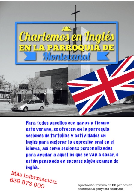 Para todos aquellos con ganas y tiempo este verano, se ofrecen en la parroquia sesiones de tertulias y actividades en inglés para mejorar la expresión oral en el idioma, así como sesiones personalizadas para ayudar a aquellos que se van a sacar, o están pensando en sacarse algún examen de inglés.
